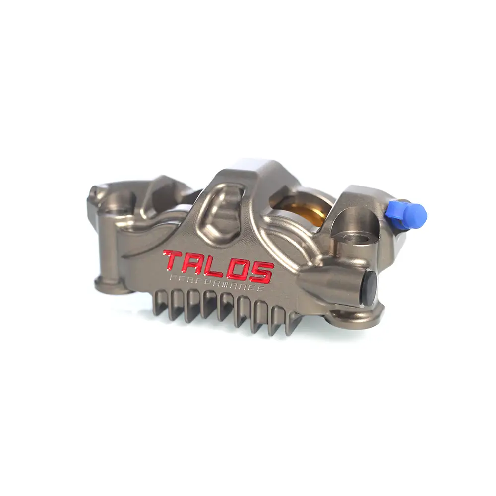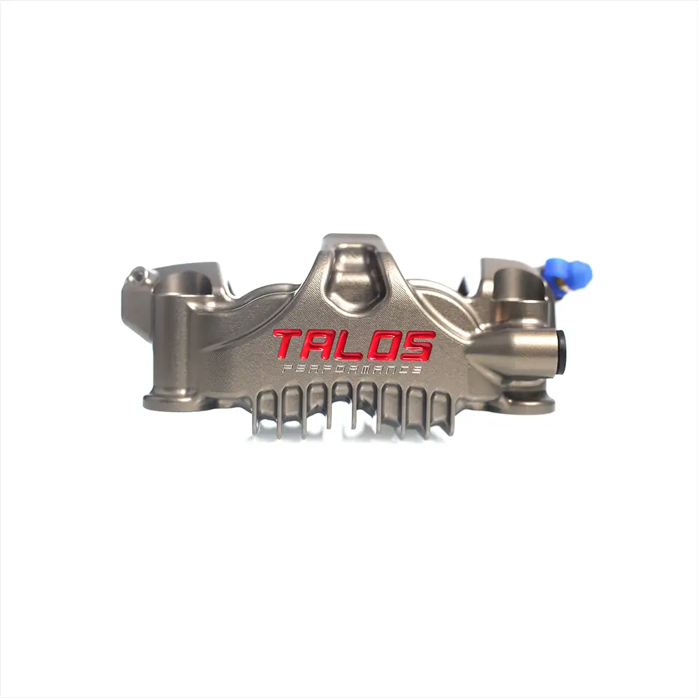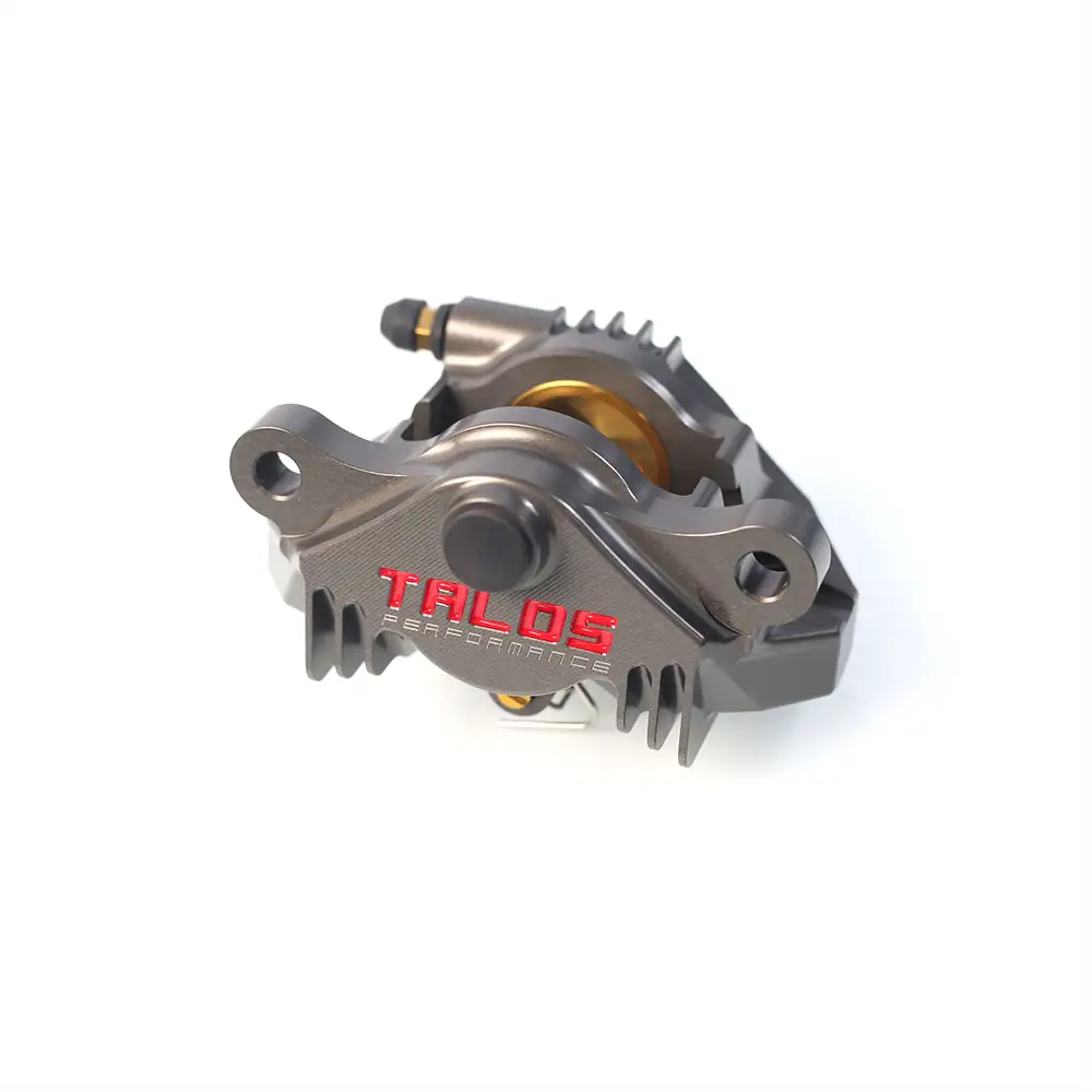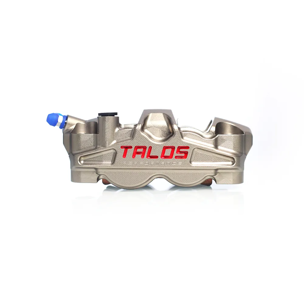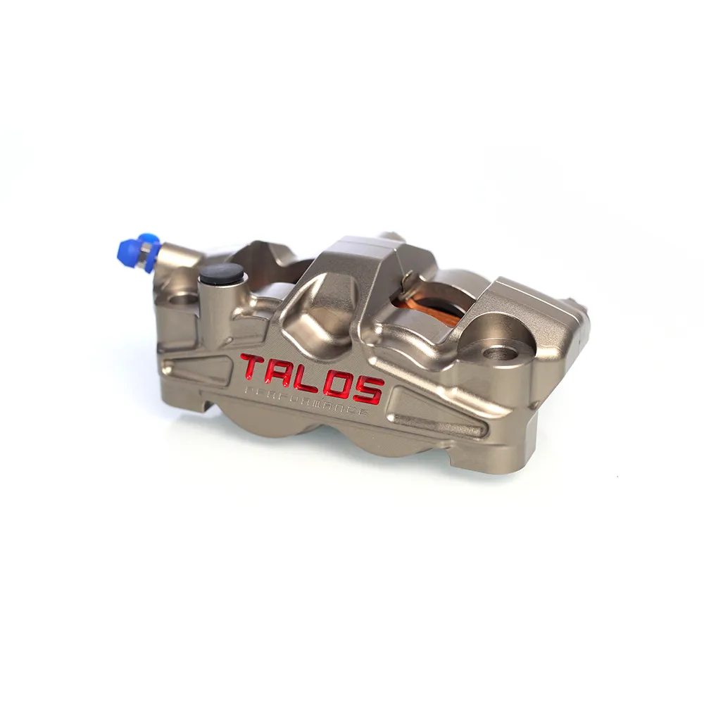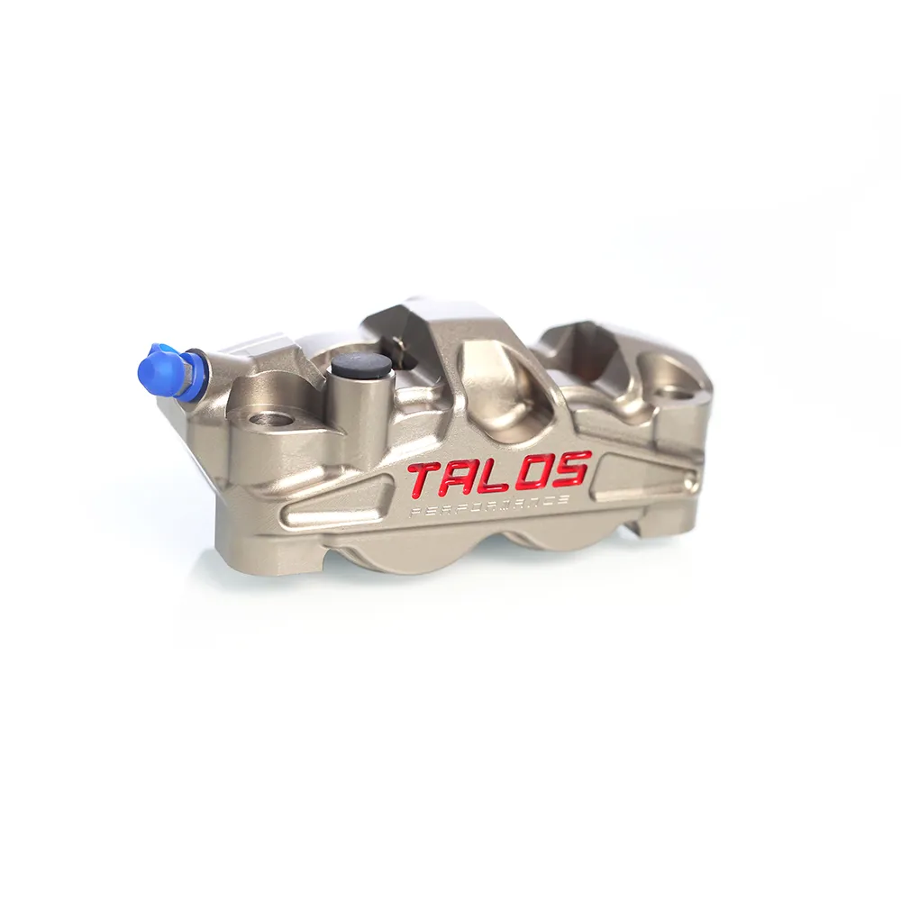 Le pinze freno Talos sono realizzate in monoblocco di alluminio billet, dotate di pistoni differenziati e trattamento anti-surriscaldamento.