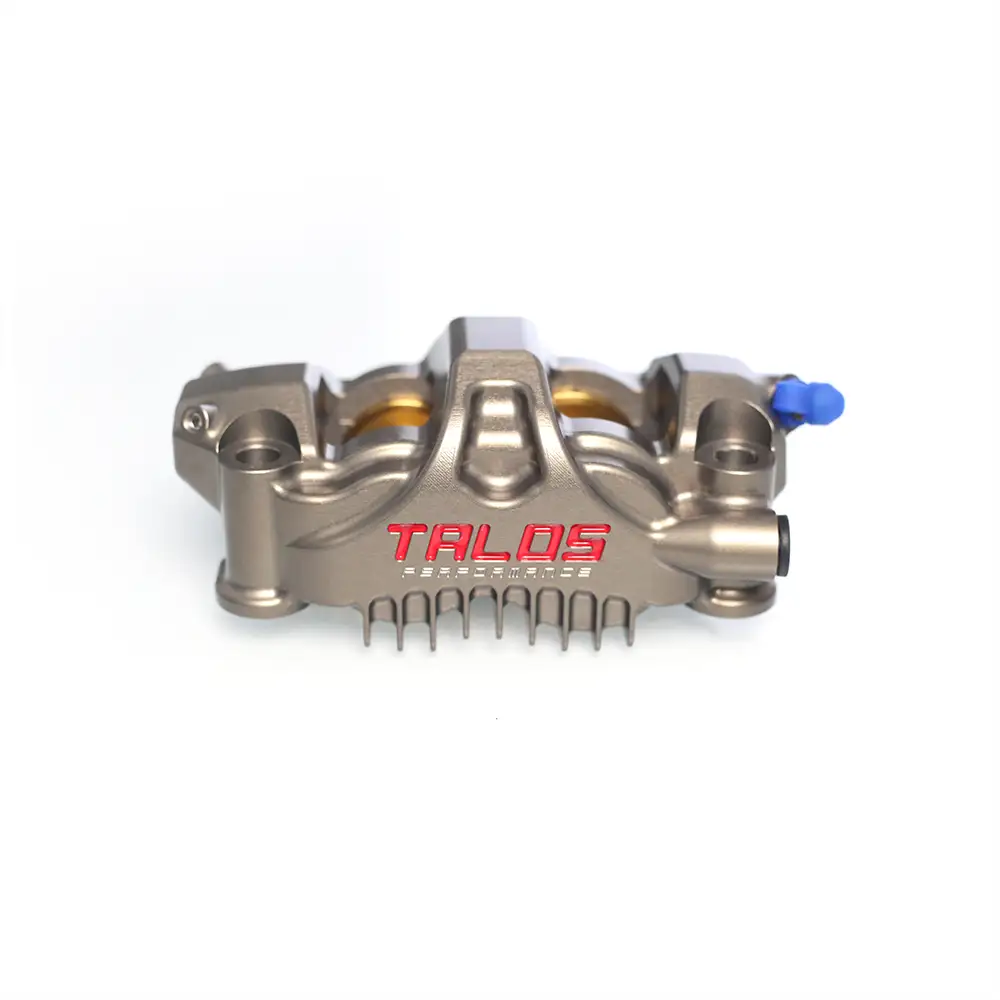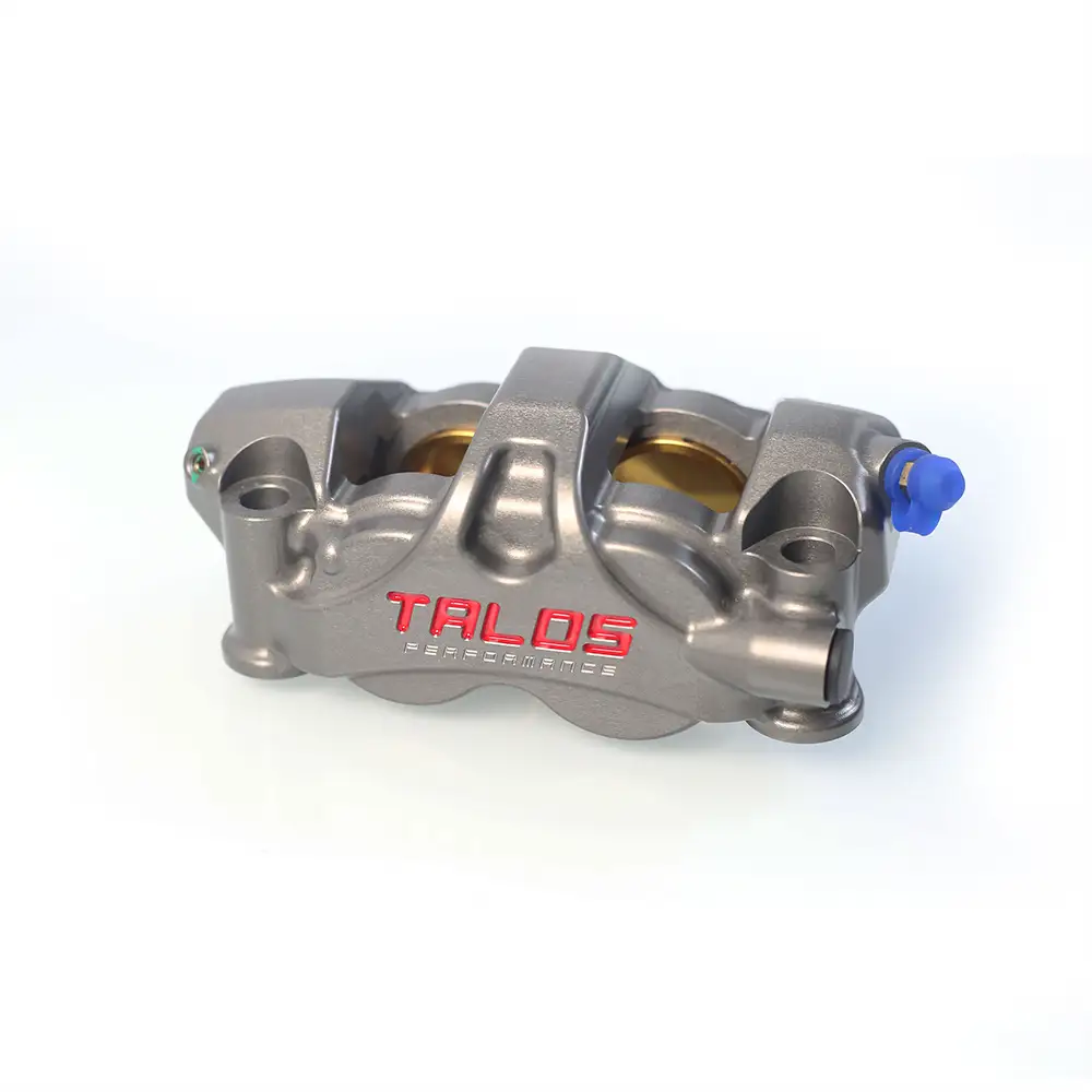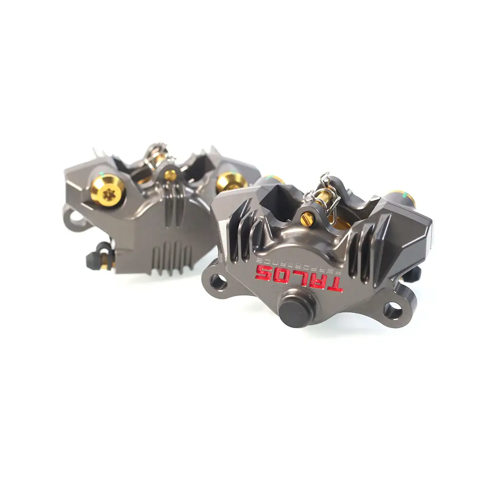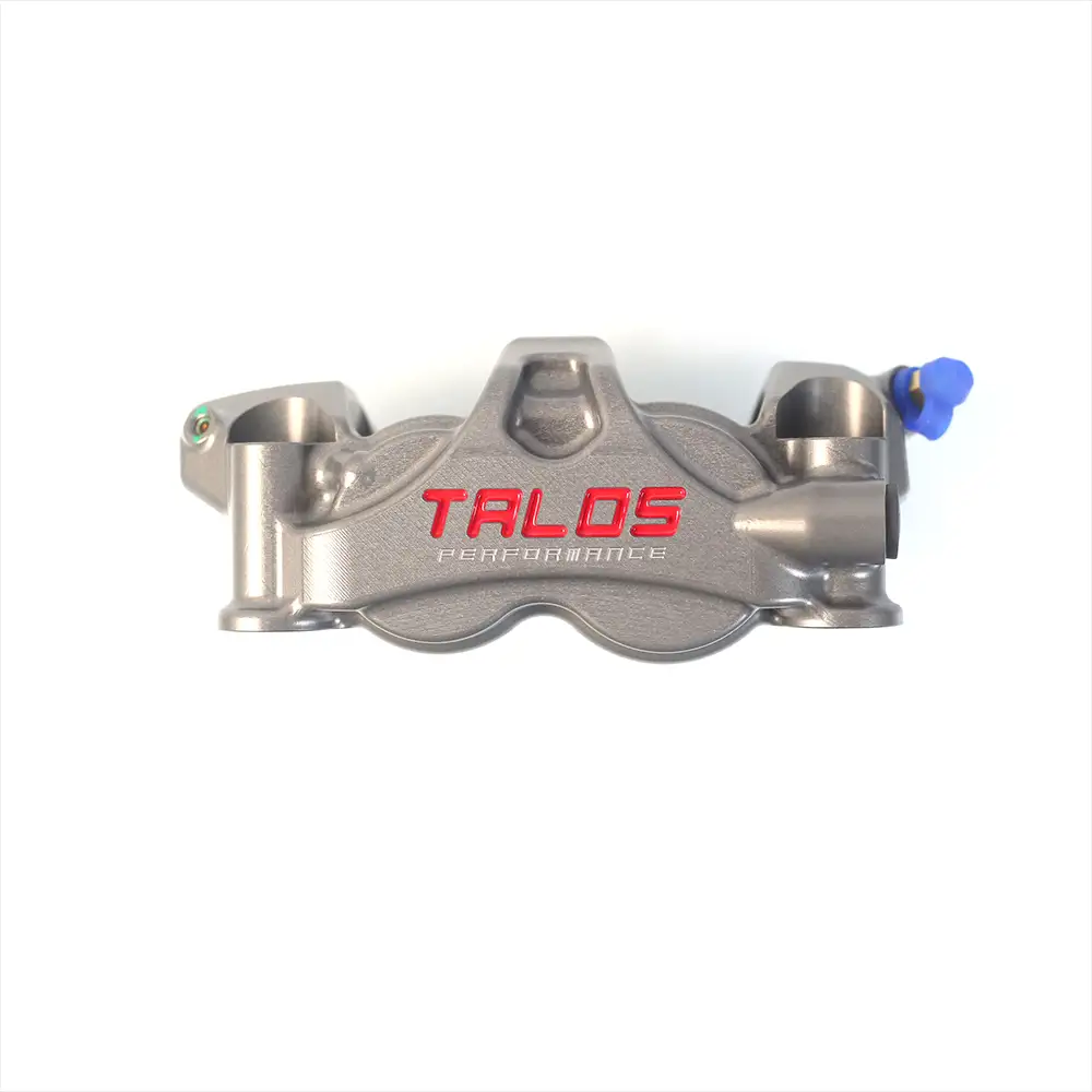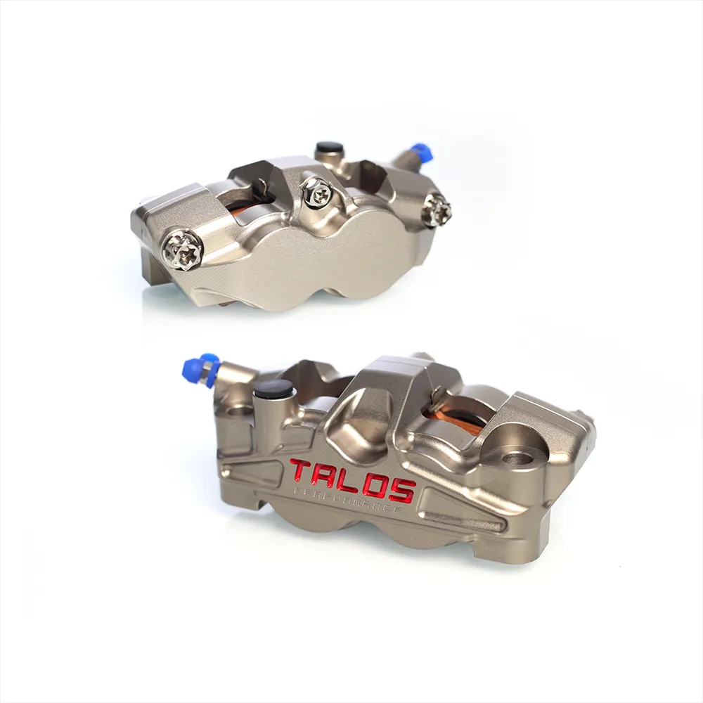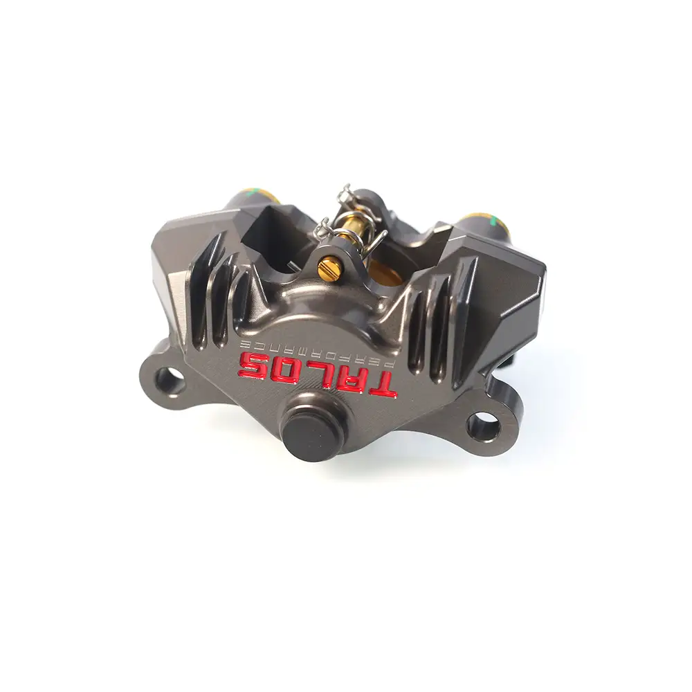 Le pinze freno Talos sono realizzate in monoblocco di alluminio billet, dotate di pistoni differenziati e trattamento anti-surriscaldamento.