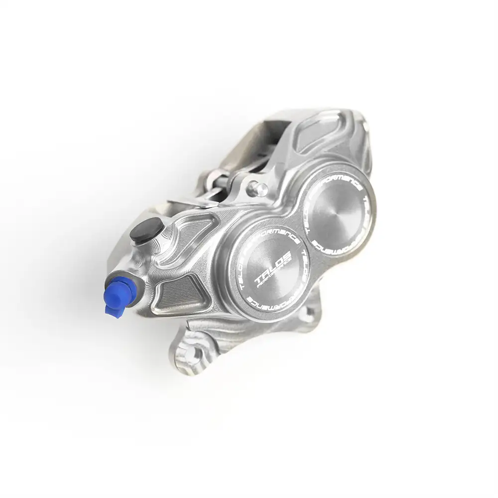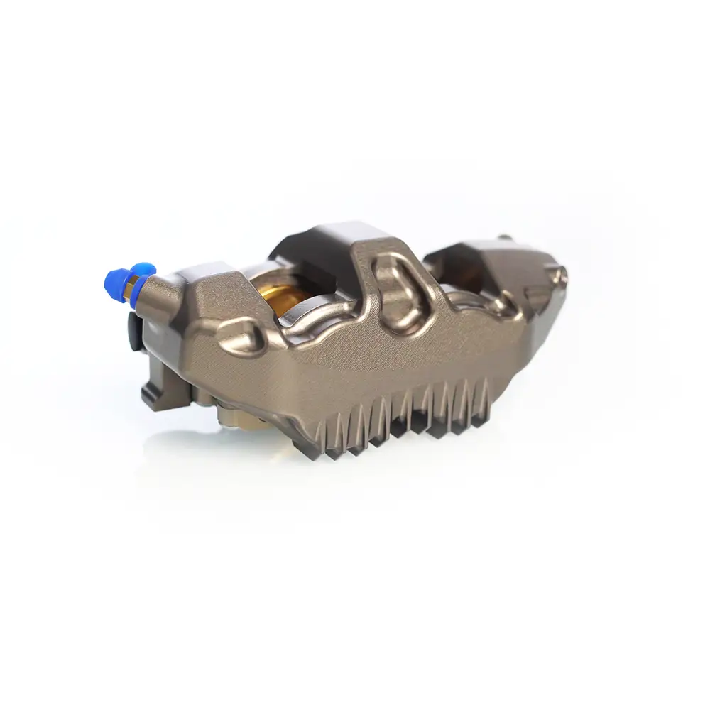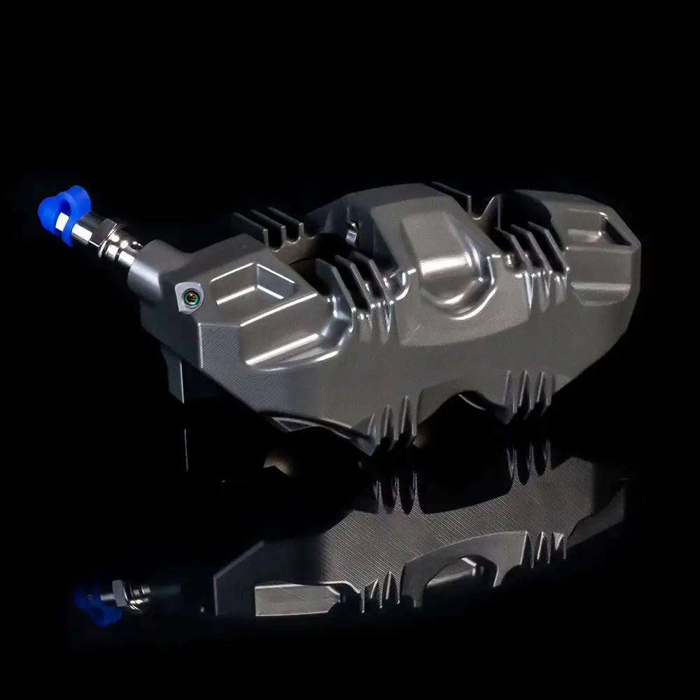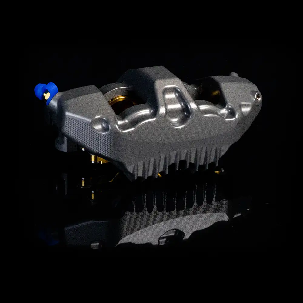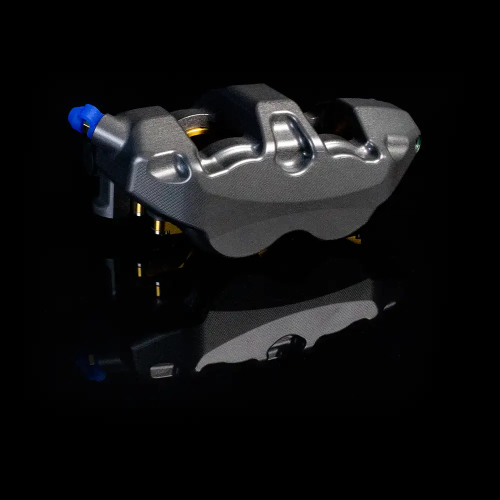 La pinza freno X80 è la nostra pinza più estrema. Costruita in monoblocco, dotata di 4 pistoni oversize (2x34mm + 2x38mm in titanio con rivestimento TIN), questa caliper è pensata per il pilota che cerca rigidità totale, risposta immediata e resistenza al fading anche nelle condizioni più estreme.